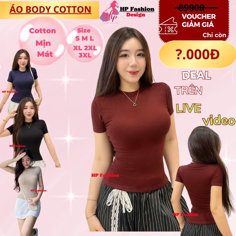 COTTON mịn  Áo thun nữ chiết eo basic cổ tròn áo phông nữ ôm body cộc ngắn tay vải  baby tee có bigsize mùa hè HP30