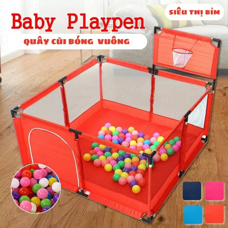 Quây bóng Vuông, rào chắn ,quây cũi cho bé có ném bóng rổ, tặng 10 bóng , khung kim loại chắc chắn (kt 1m28x1m28) to rộng thoải mái cho 4 bé chơi cùng) Đồ Chơi cautru otchobe không xanh đậm rào chắn