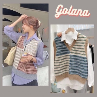 Áo gile len cổ V hoạ tiết kẻ sọc chất mềm mịn