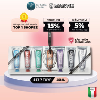 Mã COSBAUH3 giảm 8% đơn 300K Chính hãng Set 7 tuýp kem đánh răng Marvis mini 25ml Made in Italia
