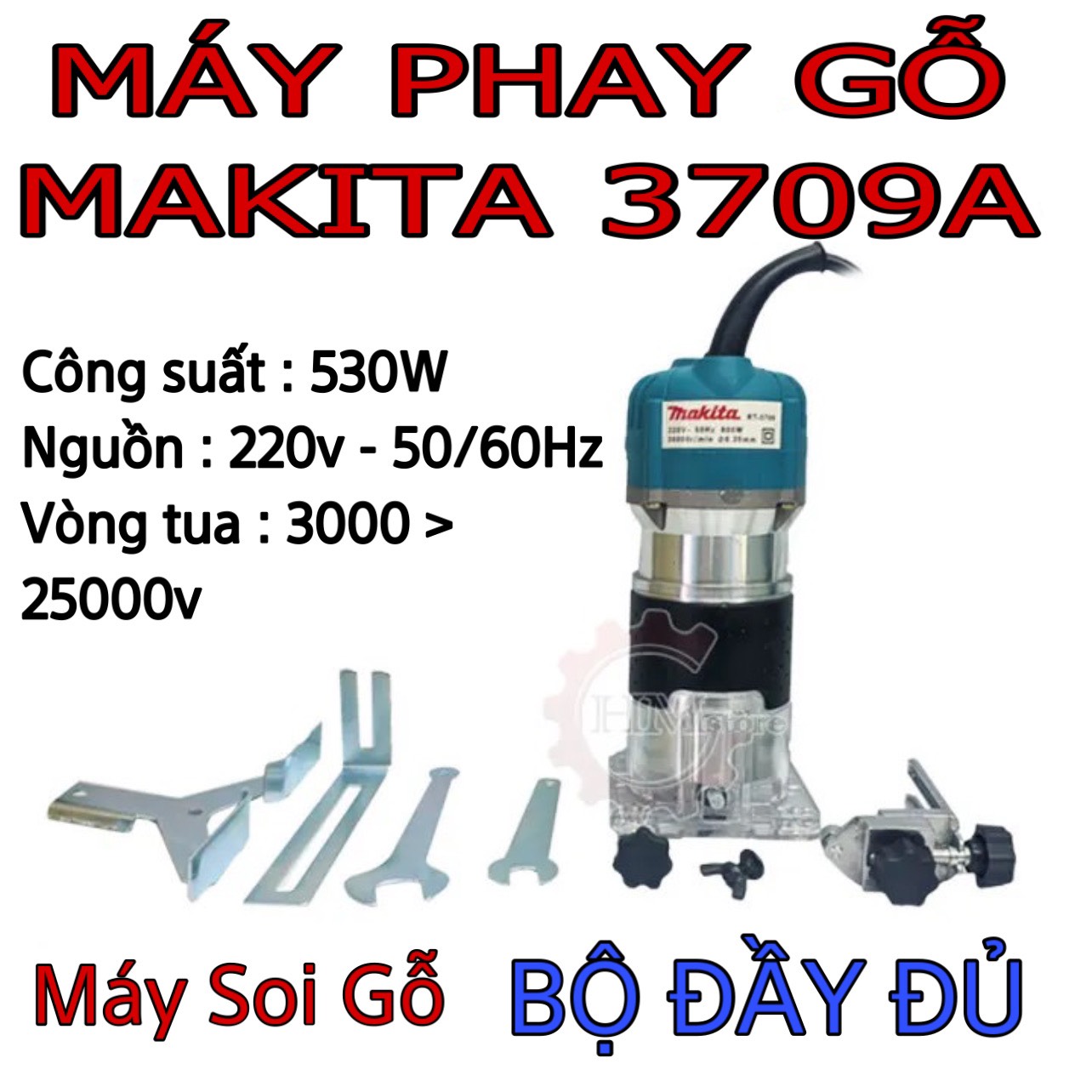 (GIÁ HOT) Máy soi gỗ cầm tay Makita 3709, công suất 800w, cốt 6.35mm - Máy soi mộng, tạo rãnh, máy phay gỗ makita - Bảo hành 6 tháng - HẢI MY STORE