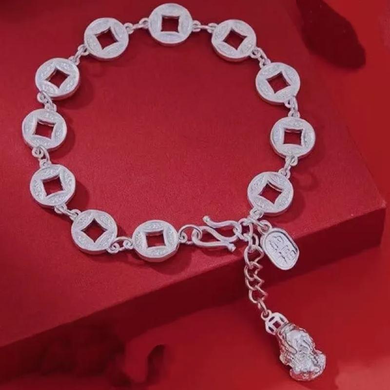 WF01 - TL004 - Vòng tay đồng xu trắng tỉ mỉ phong cánh nữ tính sang trọng